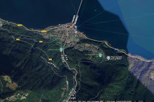 具体的に何が異様なのかと言いますと、ルガーノ湖(Lago di Lugano)の中央辺りは両岸がスイス領であるにも拘わらず、なんと約2.5キロメートルにわたるイタリアに属する湖畔があります。